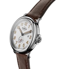 Shinola The Station Agent Automatic Brown Leather Watch, White Dial, 45mm